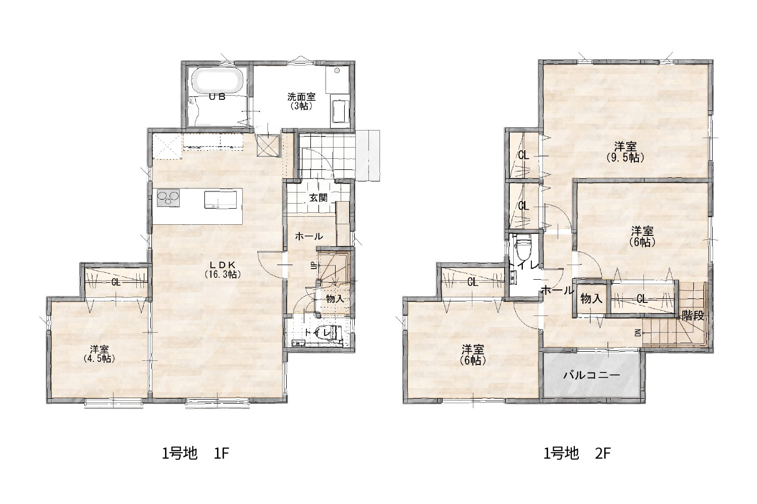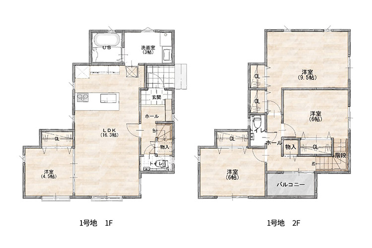 1号地間取り 4LDK、土地面積133.13㎡(40.27坪)、建物面積103.49㎡(31.30坪)