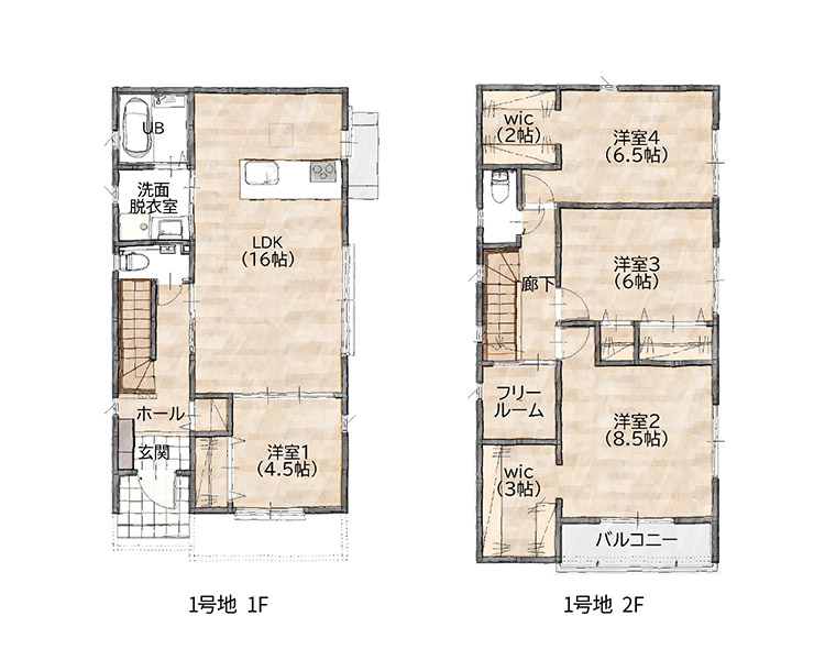 【1号地間取り】4LDK、土地面積150.34㎡(45.47坪)、建物面積109.30㎡(33.06坪)